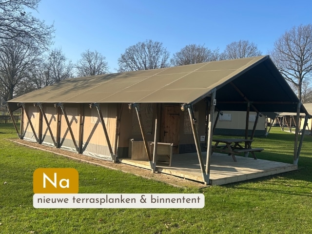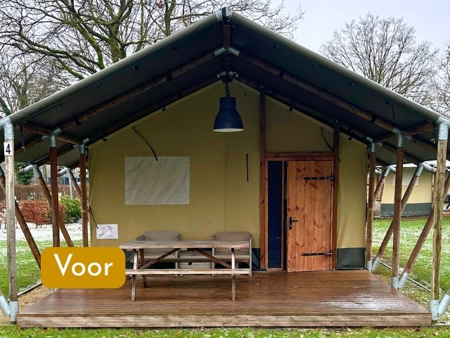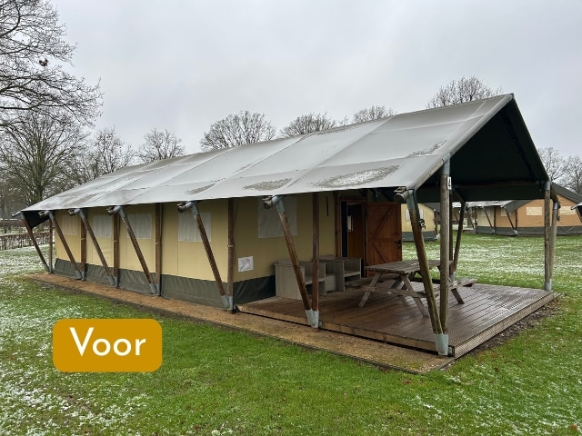Bij Camping Molencaten Waterbos vernieuwden wij het canvas, dak en frame van tien safaritenten.